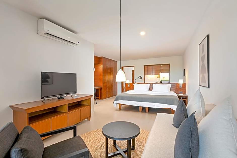 Located in the Beach Wing, features a private balcony with outdoor seating and garden or partial sea views.